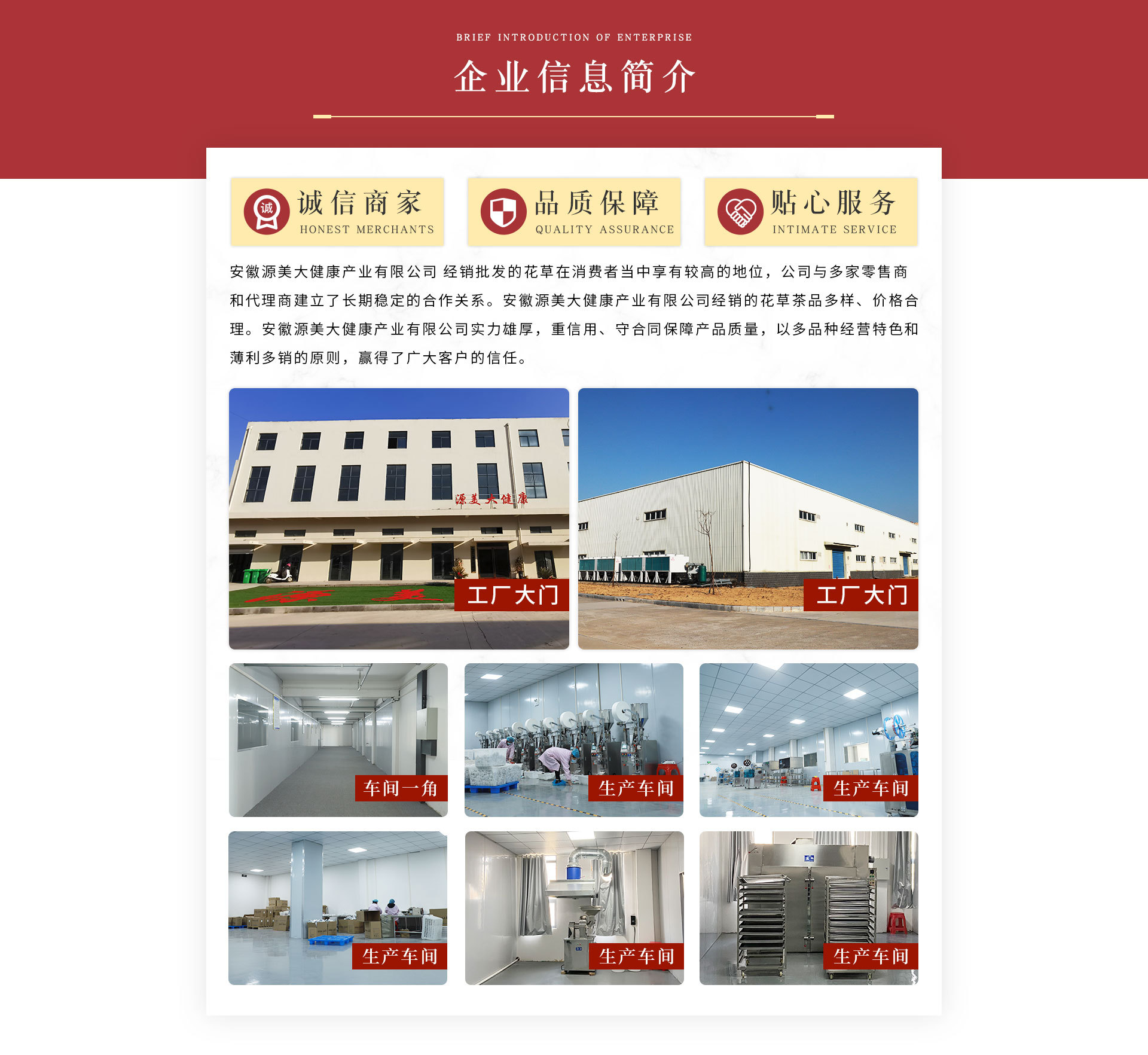 安徽源美大健康產(chǎn)業(yè)有限公司 經(jīng)銷批發(fā)的花草茶暢銷消費者市場,在消費者當(dāng)中享有較高的地位,公司與多家零售商和代理商建立了長期穩(wěn)定的合作關(guān)系。安徽源美大健康產(chǎn)業(yè)有限公司經(jīng)銷的花草茶品種齊全、價格合理。安徽源美大健康產(chǎn)業(yè)有限公司實力雄厚,重信用、守合同、保證產(chǎn)品質(zhì)量,以多品種經(jīng)營特色和薄利多銷的原則,贏得了廣大客戶的信任。