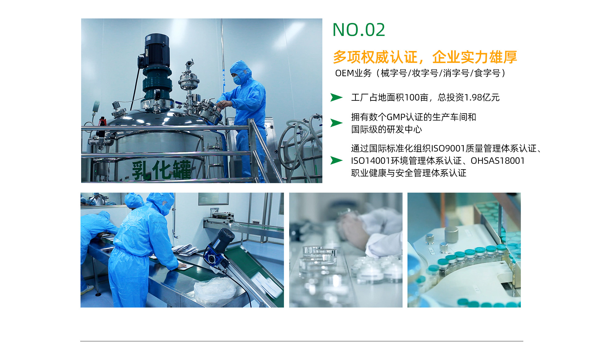 山東義才和銳生物技術有限公司坐落于孔子故里---曲阜,公司成立于2017年,母公司為北京義才和銳生物技術有限公司(www.yicaiherui.com)占地100畝,總投資1.98億元,設計產值20億元,擁有數個GMP認證的生產車間和國際級的研發中心。廠區由12個生產車間、一棟研發樓、一棟辦公樓組成,公司擁有數個10萬級凈化車間10000多平,一萬級實驗室500多平;生產經營范圍包括化妝品、醫療器械、消殺用品、食品、保健食品、中藥飲片等。二期工程占地面積63畝,預計投入5億元,主要生產醫療器械、消殺用品、中藥飲片等。預計產值20億元。 2018年,公司通過國際標準化組織ISO9001質量管理體系認證、ISO14001環境管理體系認證、OHSAS18001職業健康與安全管理體系認證,并被認定為國家級高新技術企業。