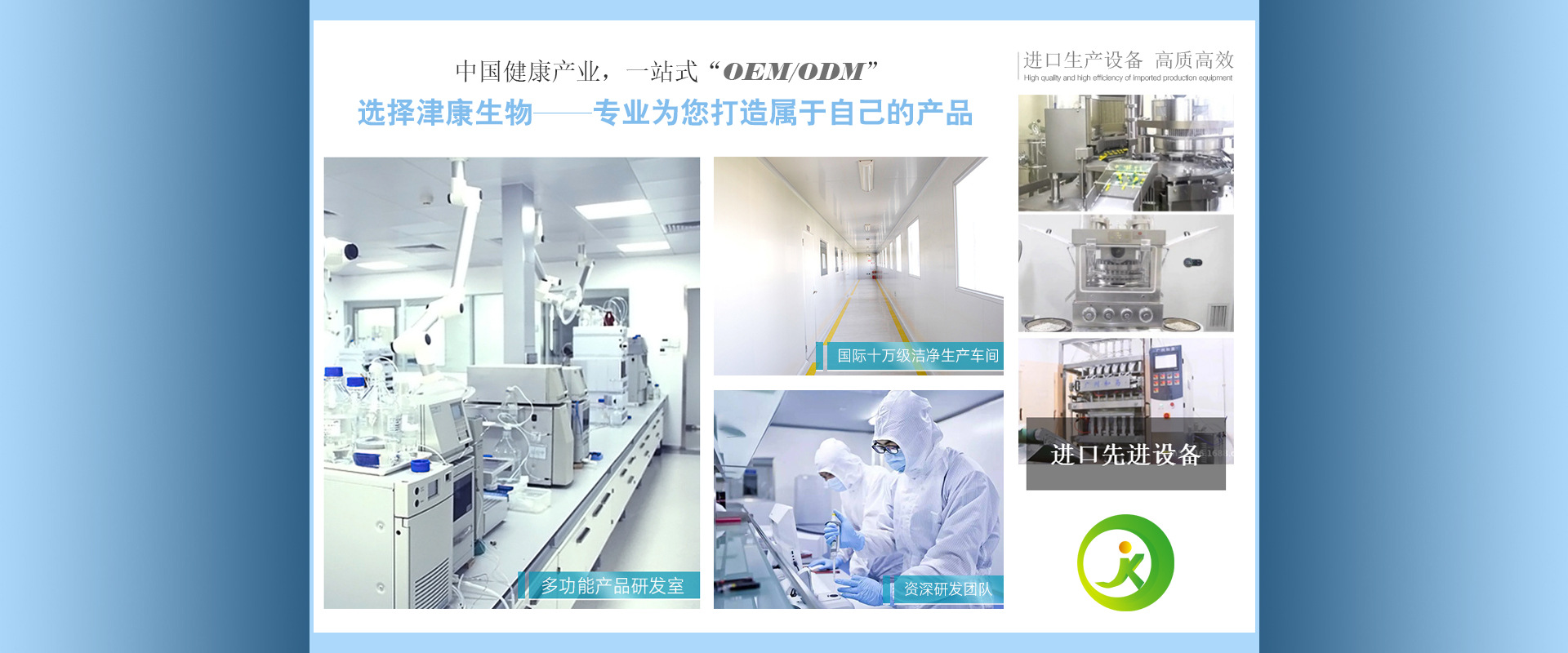 廣州津康生物科技有限公司是一家綜合性健原食品及生物技術服務企業,主營保健食品、營養食品、新資源食品生產加工OEM、ODM招商加盟等業務。目前公司旗下擁有功能性健康食品的SC食品認證工廠,主要從事業務范圍是對固體飲料、片劑/壓片糖果、軟硬膠囊、酵素果凍、酵素液體等等系列,新產品的開發、生產、 包裝、銷售及OEM 一條龍服務。服務范圍涉及品牌塑造、線下銷售、電子商務、電視購物、微商等主流渠道,客戶回頭率75%,位居行業前列,保健食品來津康! 廣州津康生產基地與南方醫科大學攜手合作,是一家集保健食品研發、生產與銷售為一體的企業。自主研發SC產品上千個、先后投資2000多萬,擁有先進的產品研發實驗室和標準化GMP、SC認證的四大劑型生產車間。