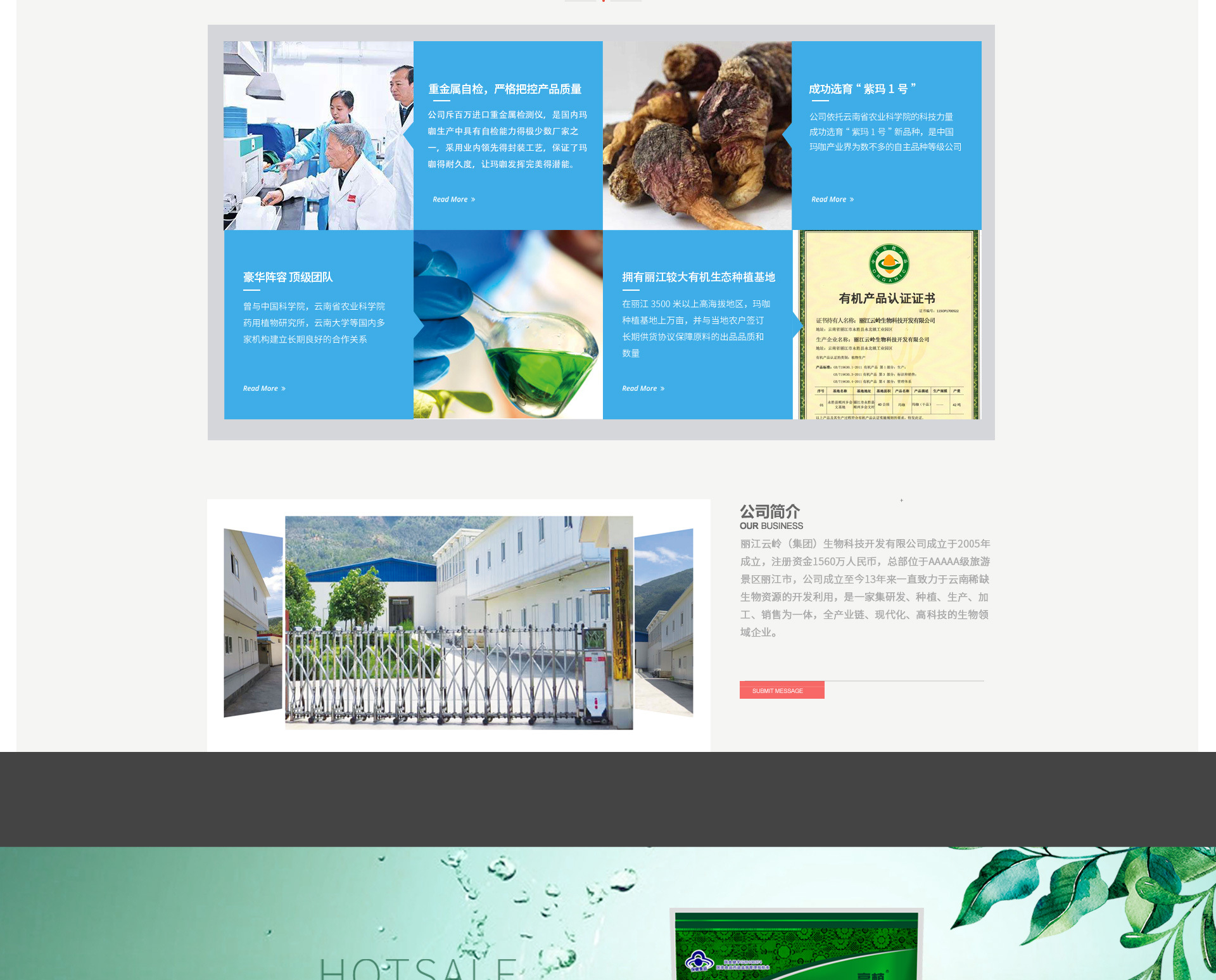 麗江云嶺生物科技開發(fā)有限公司成立于2005年,本公司主要從事麗江本土生物資源研發(fā)、加工與銷售,開發(fā)經(jīng)營永勝螺旋藻、瑪咖、松花粉等。公司本著“依靠當(dāng)?shù)貎?yōu)勢資源,開發(fā)先進生產(chǎn)技術(shù),整合吸收各方力量,嚴(yán)格管理、誠信經(jīng)營、不斷創(chuàng)新”的企業(yè)宗旨,努力成為最好的螺旋藻保健品供應(yīng)商。2007年,公司與云南省農(nóng)業(yè)科學(xué)院藥用植物研究所合作,推出了“高植”牌螺旋藻系列產(chǎn)品,在市場上獲得極高贊譽。公司于2009年,在永勝縣永北鎮(zhèn)工業(yè)園區(qū)投資1500萬元,建立了完善的集開發(fā)、研究、加工、銷售為一體的程海螺旋藻及瑪咖產(chǎn)品開發(fā)基地。公司現(xiàn)擁有一條生產(chǎn)能力為年產(chǎn)200噸螺旋藻及片劑產(chǎn)品的生產(chǎn)線及其配套基礎(chǔ)設(shè)施,該生產(chǎn)線包括..