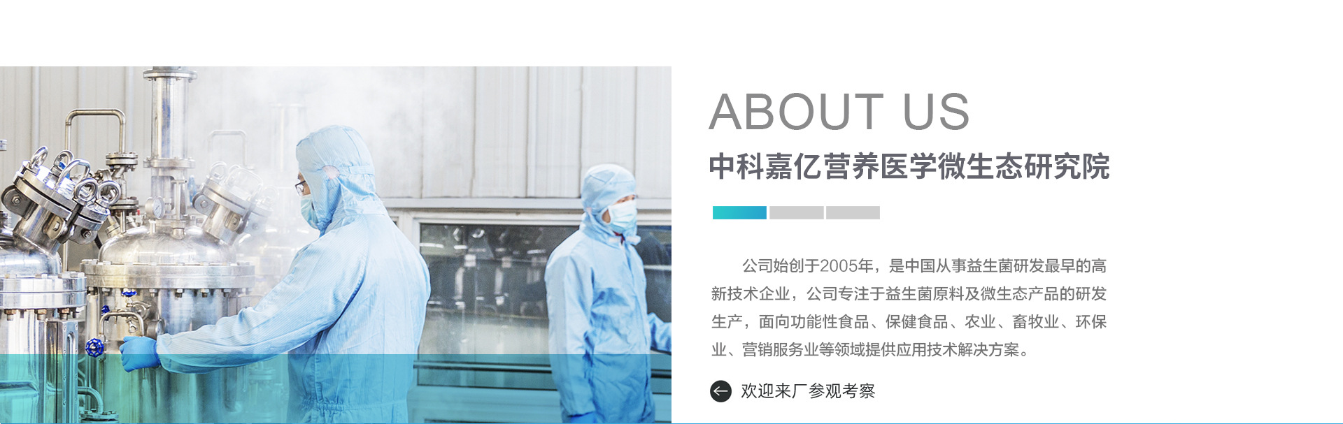 中科嘉億營(yíng)養(yǎng)醫(yī)學(xué)(山東)微生態(tài)研究院有限公司是益生菌原料、益生菌固體飲料、發(fā)酵草本飲品等產(chǎn)品專業(yè)生產(chǎn)加工的公司,擁有完整、科學(xué)的質(zhì)量管理體系。公司先后通過了高新技術(shù)企業(yè)認(rèn)定、ISO22000食品安全體系認(rèn)證、HALLAL認(rèn)證、全系列微生態(tài)產(chǎn)品出口資質(zhì)認(rèn)證,并與中科院(沈陽)應(yīng)用生態(tài)所共建有“中科嘉億微生態(tài)技術(shù)應(yīng)用研究院”,以專業(yè)、專注的態(tài)度廣泛的服務(wù)于食品和大健康產(chǎn)業(yè)。 公司的生產(chǎn)基地不僅擁有十萬級(jí)潔凈車間和高密度發(fā)酵、真空冷凍干燥工藝設(shè)施與品質(zhì)提升管理體系,還具有系統(tǒng)的科研、技術(shù)和管理、運(yùn)營(yíng)團(tuán)隊(duì);已實(shí)現(xiàn)了從菌株到菌粉的工業(yè)標(biāo)準(zhǔn)量化,并完成了人用益生菌制劑、益生菌固體飲料、發(fā)酵果蔬汁飲品、液態(tài)..