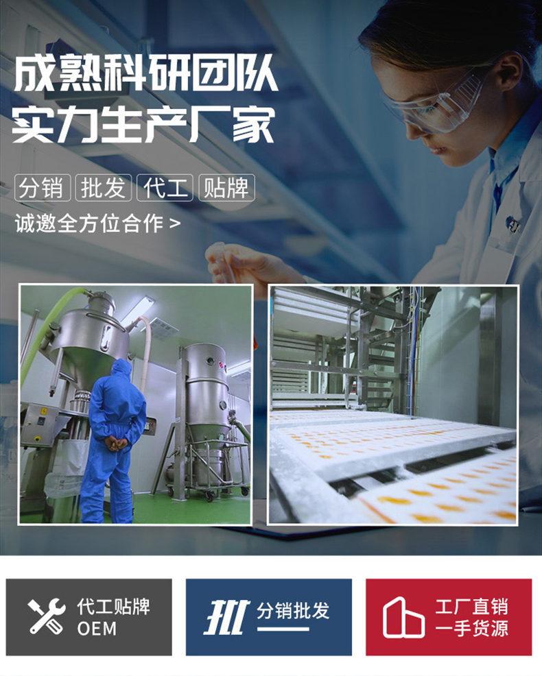 現(xiàn)已形成生物制品、保健食品、大健康食品、無糖清口含片及軟糖的研發(fā)、生產(chǎn)、銷售一體的現(xiàn)代化企業(yè)。此外,也專注于軟糖、壓片糖果、產(chǎn)品代加工、OEM/ODM一站式定制服務。目前已為三只松鼠、良品鋪子、君樂寶、瑞龍國藥、燕之坊、叮當健康等代工。