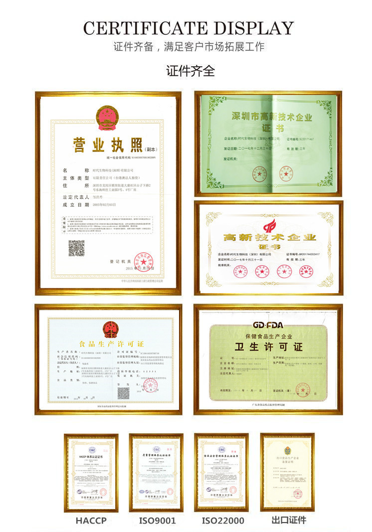 代工品類:γ-氨基丁酸 初乳堿性蛋白 低聚果糖漿 膠原肽 藍(lán)莓葉黃素酯 牛脾肽 引力素節(jié)節(jié)高飲品