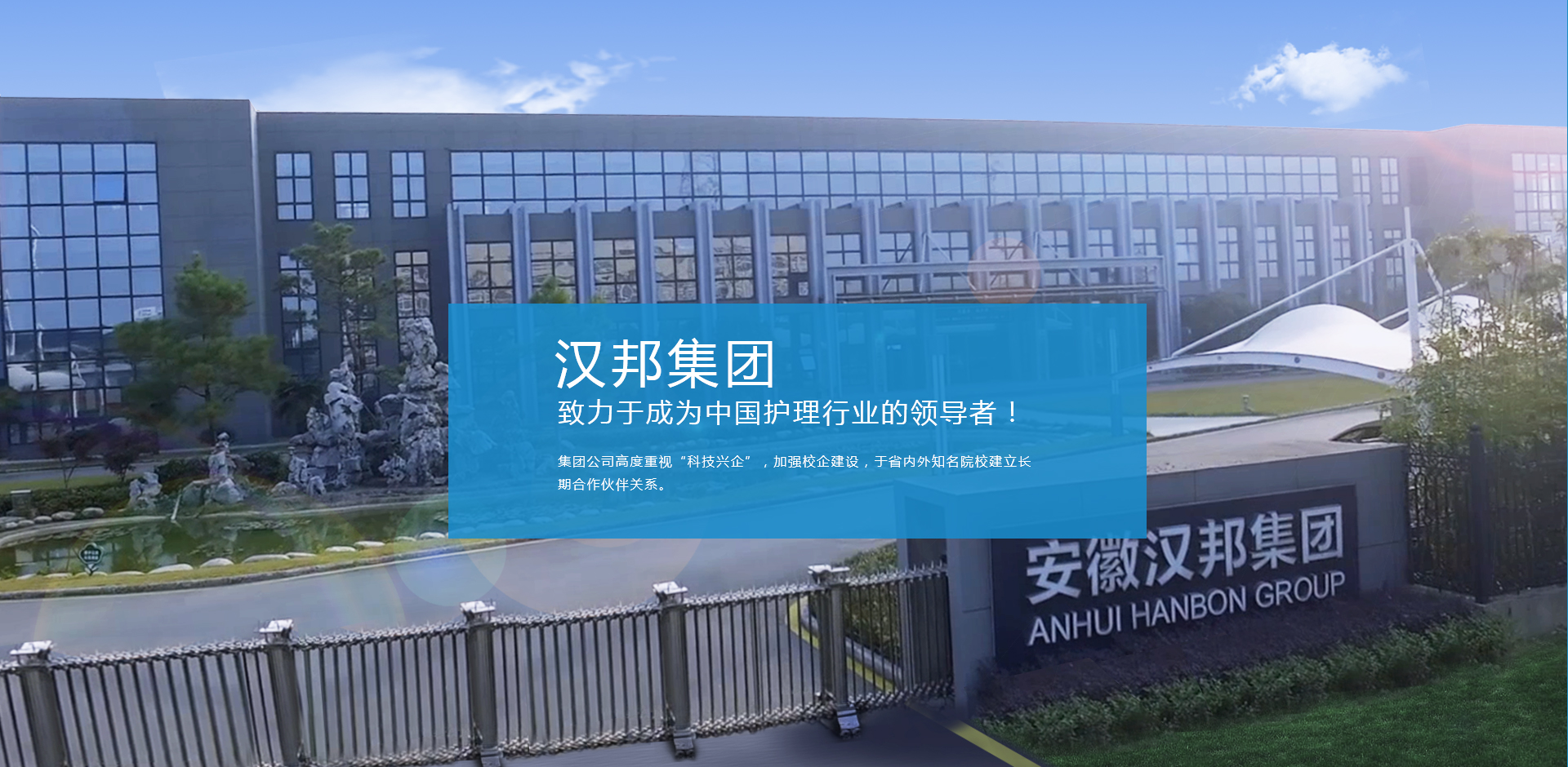 安徽漢邦醫療用品集團有限公司成立于2007年,其前身是合肥漢邦醫療用品有限公司,是一家專門生產各類醫療用品、衛生用品、個人護理用品的現代化生產和銷售型企業,是安徽省餐飲行業協會副會長單位。全球擁有員工6000余人,其中管理人員近500人。集團公司固定資產20億元以上,全球擁有10萬級凈化車間、實驗室、倉儲面積達50萬平方。公司旗下有9個子公司。