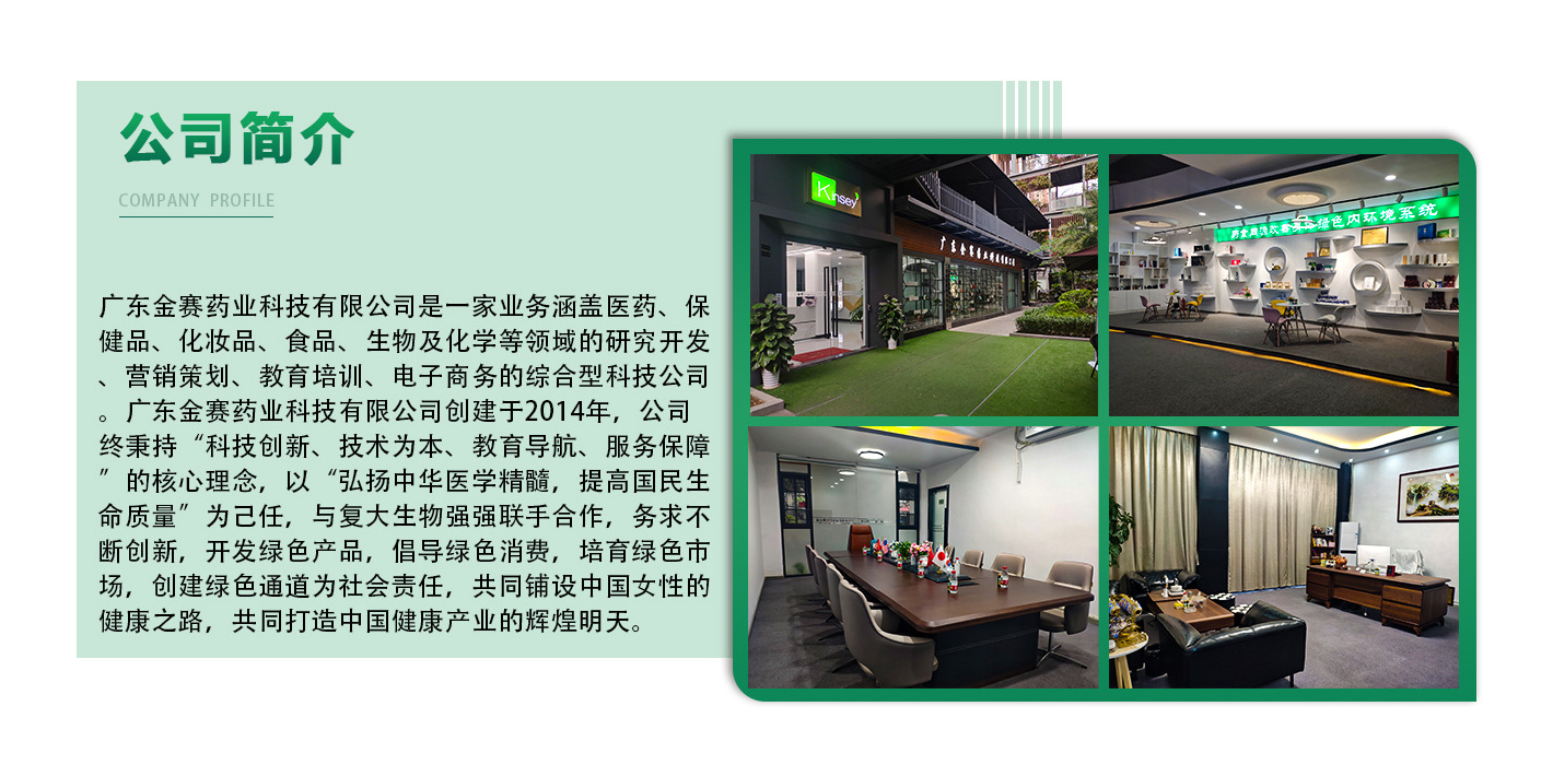 廣東金賽藥業(yè)科技有限公司是一家業(yè)務(wù)涵蓋醫(yī)藥、保健品、化妝品、 食品、生物及化學(xué)等領(lǐng)域的研究開發(fā)、營(yíng)銷策劃、教育培訓(xùn)、電子商務(wù)的綜合型科技公司。 廣東金賽藥業(yè)科技有限公司創(chuàng)建于2014年,公司終秉持"科技創(chuàng)新、技術(shù)為本、教育導(dǎo)航、服務(wù)保障"的核心理念,以"弘揚(yáng)中華醫(yī)學(xué)精髓,提高國(guó)民生命質(zhì)量"為己任,與復(fù)大生物強(qiáng)強(qiáng)聯(lián)手合作,務(wù)求不斷創(chuàng)新,開發(fā)綠色產(chǎn)品,倡導(dǎo)綠色消費(fèi),培育綠色市場(chǎng),建設(shè)綠色通道為社會(huì)責(zé)任,共同鋪設(shè)中國(guó)女性的健康之路,共同打造中國(guó)健康產(chǎn)業(yè)的輝煌明天。
