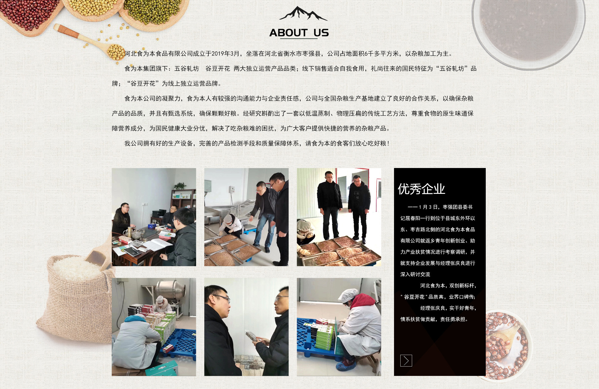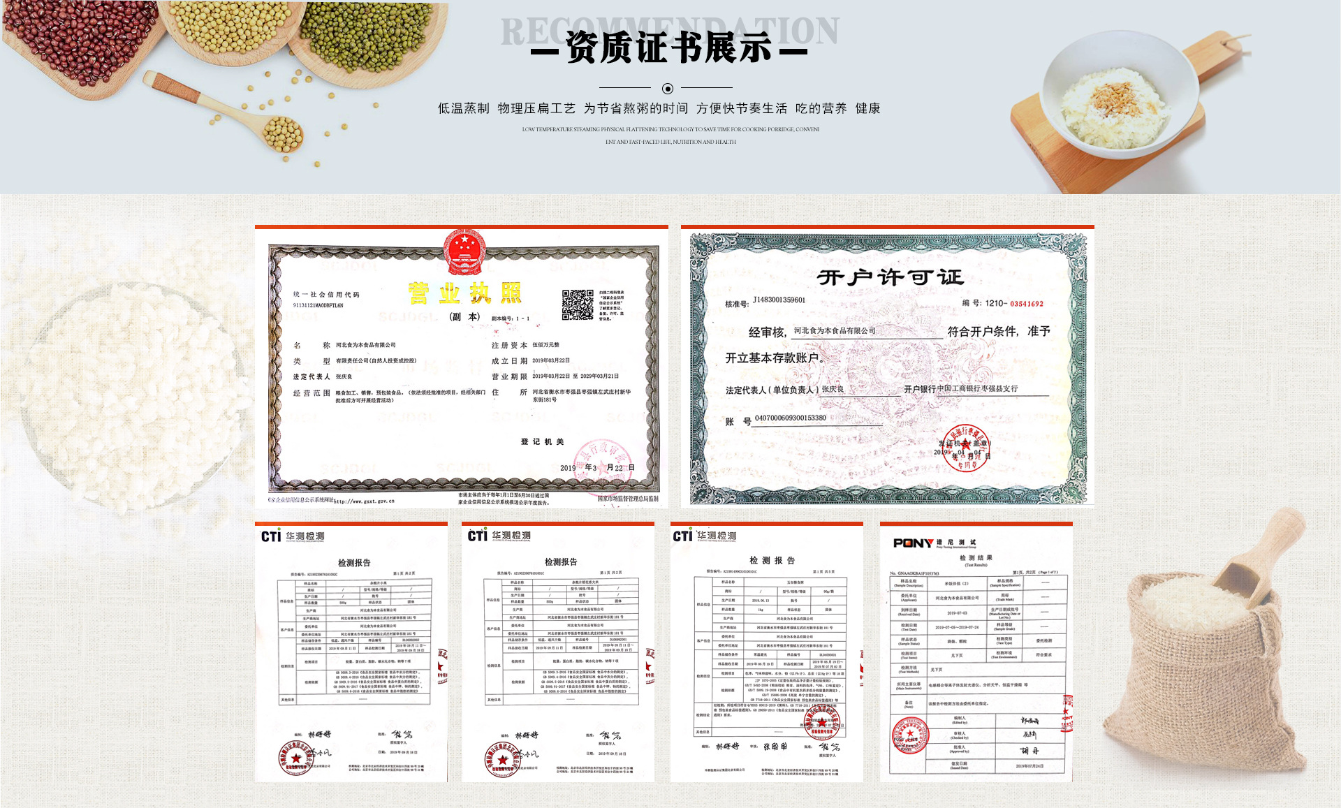 河北食為本食品有限公司成立于2019年3月,坐落在河北省衡水市棗強縣,公司占地面積6600多平米,是一家專業生產速熟養生雜糧產品的企業。 五谷雖好,但是食之不易,我公司恰恰解決了這個技術的難題,以一套完整且成熟的低溫蒸制(100度以下)搭配物理壓扁的工藝,使產品營養不流失還保持了谷物的原始味道。而且大大縮短了雜糧產品的蒸煮時間,從而達到了速熟的效果,滿足了現代人群快節奏生活的需要。 速熟養生雜糧產品目前市場空白,與之相近的產品只有烘焙工藝,但是低溫烘焙產品的加工溫度是130-160度,這個溫度卻是微量元素、維生素的殺手。我們產品的生產溫度是100度以下,最大程度上保留了產品中的微量元素及各種維生素。烘焙后的產品為火性食物且口感產生變化,不宜多食。低溫蒸制則不會出現這個問題,且口感與原糧口感無異。