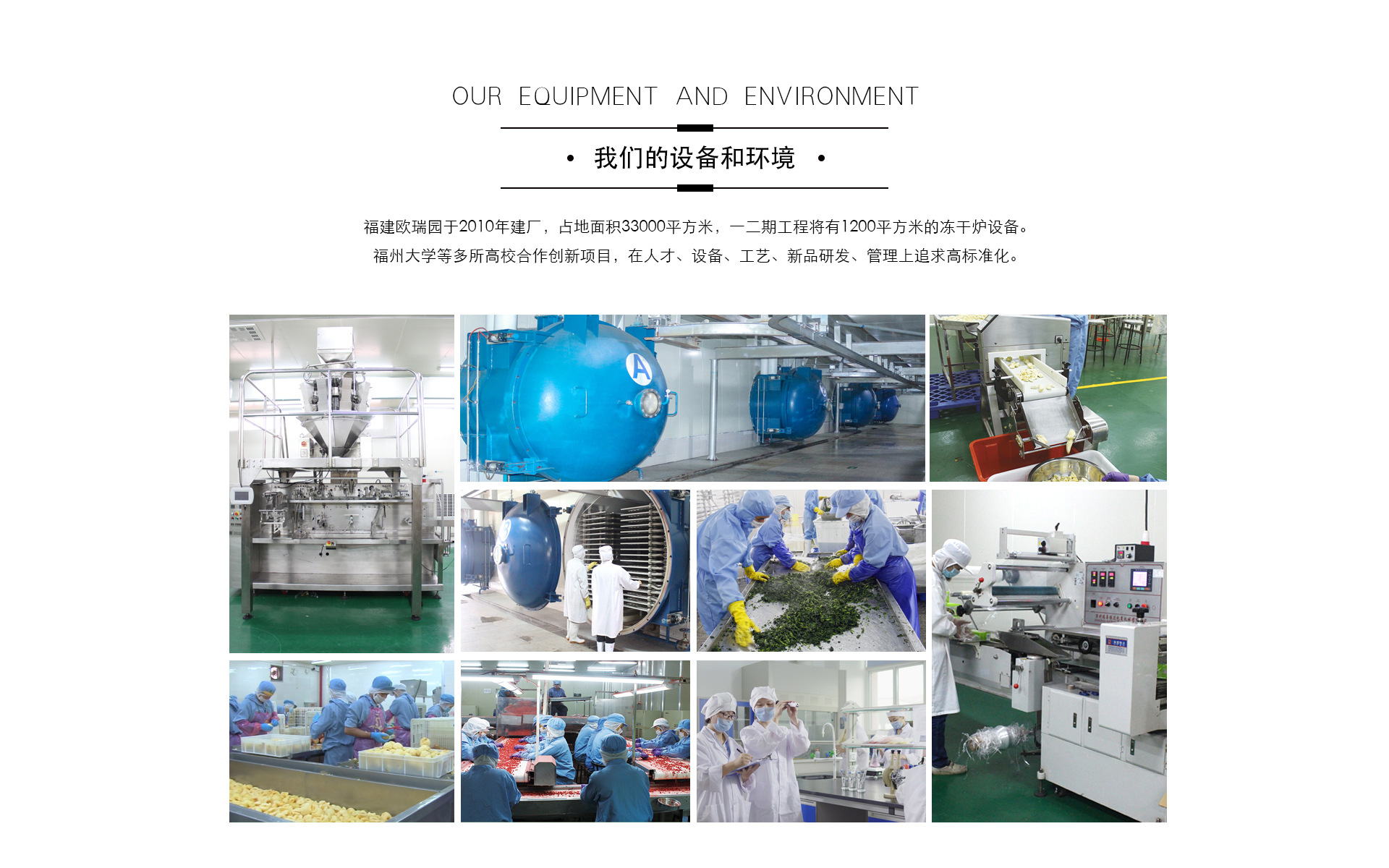 歐瑞園集團(tuán)創(chuàng)建于2000年,專業(yè)從事大健康食品的研發(fā)、生產(chǎn)及銷售的國際型集團(tuán)公司。集團(tuán)旗下?lián)碛形寮夜S及分公司。其中福建歐瑞園食品有限公司總投資3000萬美元,占地50畝,擁有并規(guī)劃一二期1600平方米凍干爐設(shè)備。澳閩利康大健康產(chǎn)業(yè)園是2019年閩澳合作福建省重點(diǎn)項(xiàng)目,總投資5億人民幣,占地120畝,規(guī)劃3200平方米凍干爐設(shè)備。在食品行業(yè)二十年來,公司以誠信、品質(zhì)、創(chuàng)新、專注為企業(yè)競爭力,在食品行業(yè)穩(wěn)步發(fā)展。