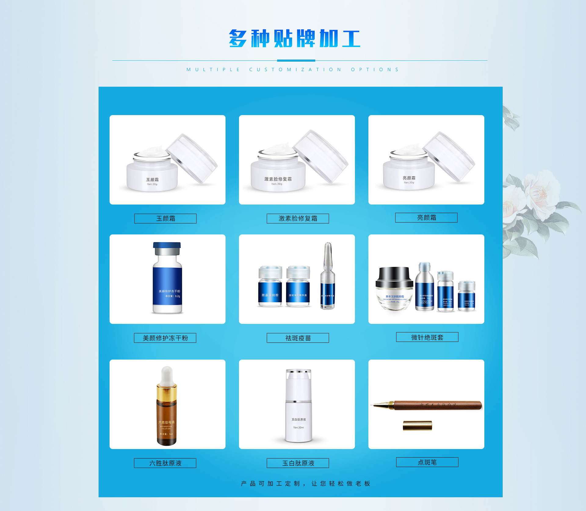 未認證 代工品類:貼片面膜; 氨基酸潔面摩絲; 經典補水液; 玉白肽原液; 出水芙蓉保濕霜