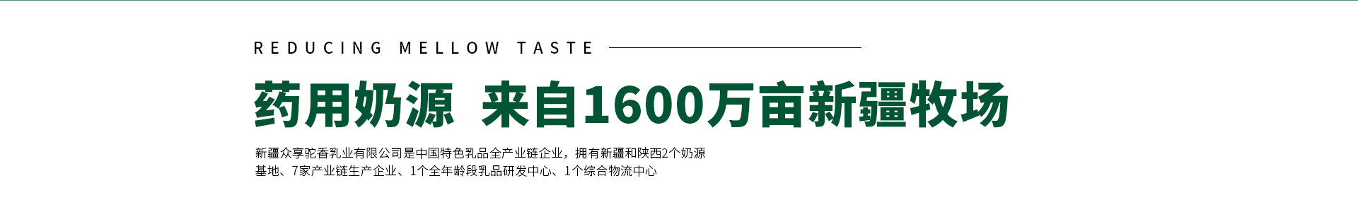 新疆眾享駝香乳業有限公司是中國特色乳制品全產業鏈企業,生產經營液態羊奶、羊奶粉、駝奶粉、馬奶粉、驢奶粉等特色乳品,擁有新疆和陜西2個奶源基地、7家產業鏈生產企業、1個全年齡段乳制品研發中心、1個綜合物流中心及營養乳制品、藥食同源乳制品2類產品體系。旗下生產工廠具有嬰粉生產資質,通過ISO\GMP\HACCP權威認證,具備全套乳制品檢測設備,是中國農科城重點企業。 新疆眾享駝香乳業有限公司是藥食同源羊奶粉類型開創者和國內規模頂尖的駝奶粉供應商,OEM生產服務達到100多個品牌,可為客戶提供原料、配方、生產、包裝、認證、物流等全套解決方案。歡迎各界朋友蒞臨參觀、指導和業務洽談。