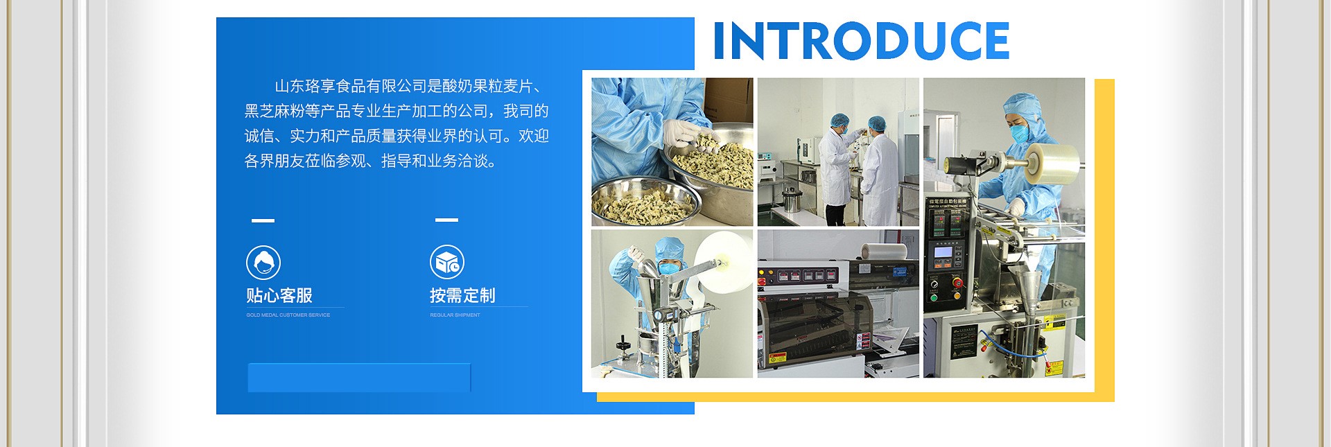 山東珞享食品有限公司是酸奶果粒麥片、黑芝麻粉等產(chǎn)品生產(chǎn)加工的公司,山東珞享食品有限公司的誠信、實(shí)力和產(chǎn)品質(zhì)量獲得業(yè)界的認(rèn)可。歡迎各界朋友蒞臨參觀、指導(dǎo)和業(yè)務(wù)洽談。