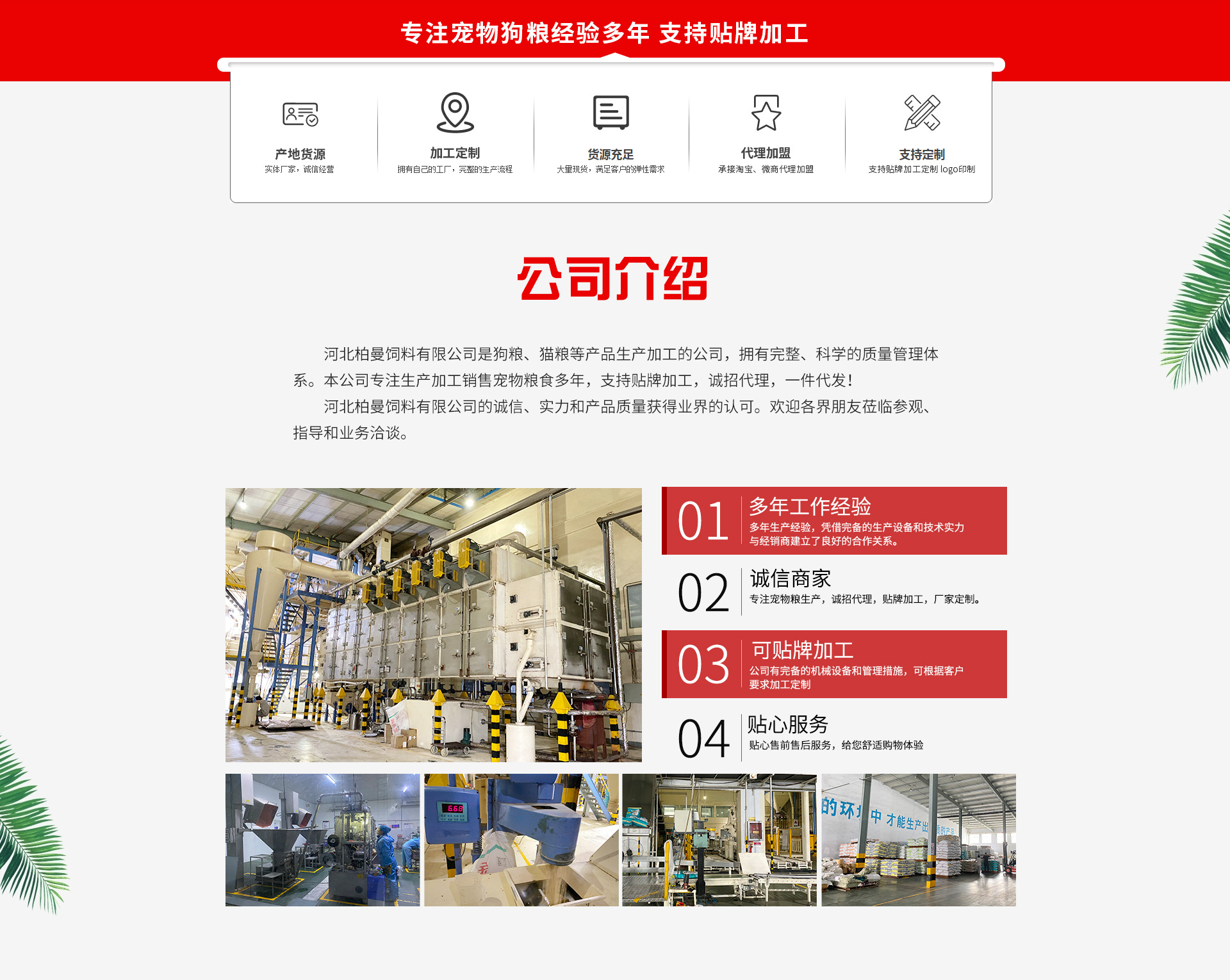 河北柏曼寵物飼料,擁有全國最先進的生產設備。十年創業奮斗只為寵物吃到最健康的食品。