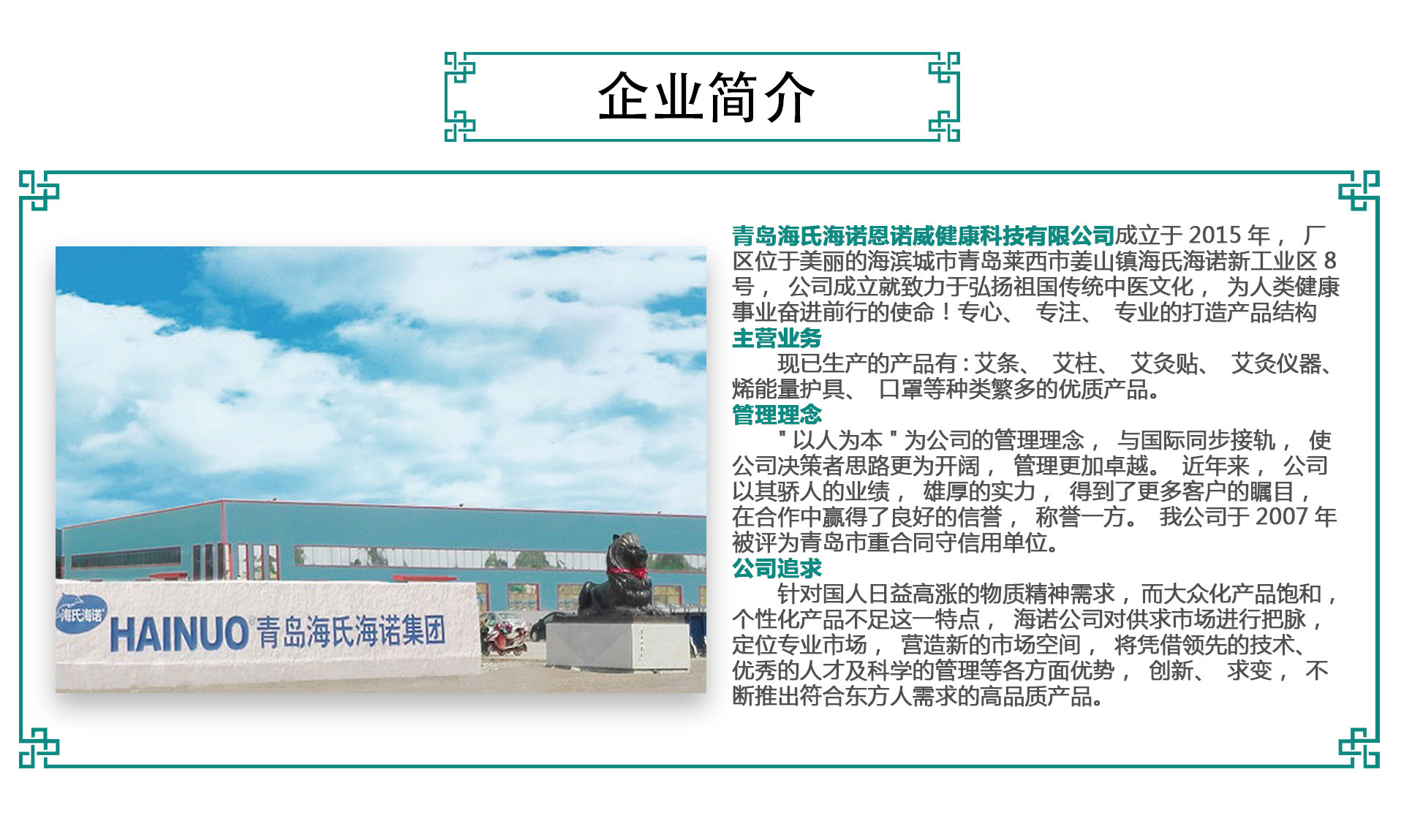 海氏海諾集團旗下子公司海氏海脈,主營防疫物資,艾產品,各種貼劑。