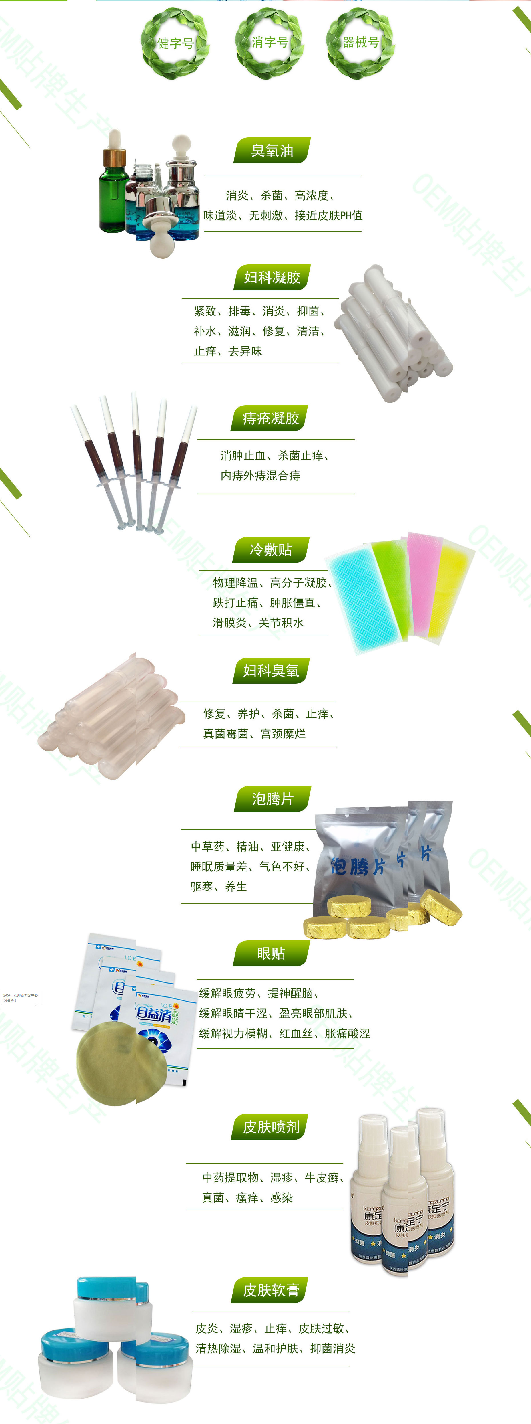 陜西正奇醫藥保健品有限責任公司是專業從事保健用品的研發,生產,對外加工科研生產企業。公司擁有保健用品(貼劑、栓劑等),消毒衛生用品(水劑、膏劑、凝膠劑、酊劑、洗液、泡騰片、隱形眼鏡護理液)生產線。公司視產品質量為企業生命,以重合同,守信譽為企業立足之本。在于國內各知名廠商的協作中取得了信任,實現了雙贏,使我公司的消毒衛生用品經銷渠道流經長江南北,銷售網點遍布長城內外。我們堅持以客戶為根本,一質量為導向,秉承誠信,守時,科學,嚴謹的服務精神;本著誠信為本,價格合理,供貨及時的理念。憑借成熟的生產配方,過硬的技術力量,先進的生產設備,面向全國各地企業級個人進行產品打包、貼牌生產。我們始終認為客戶的成功就是我們價值的最大體現。