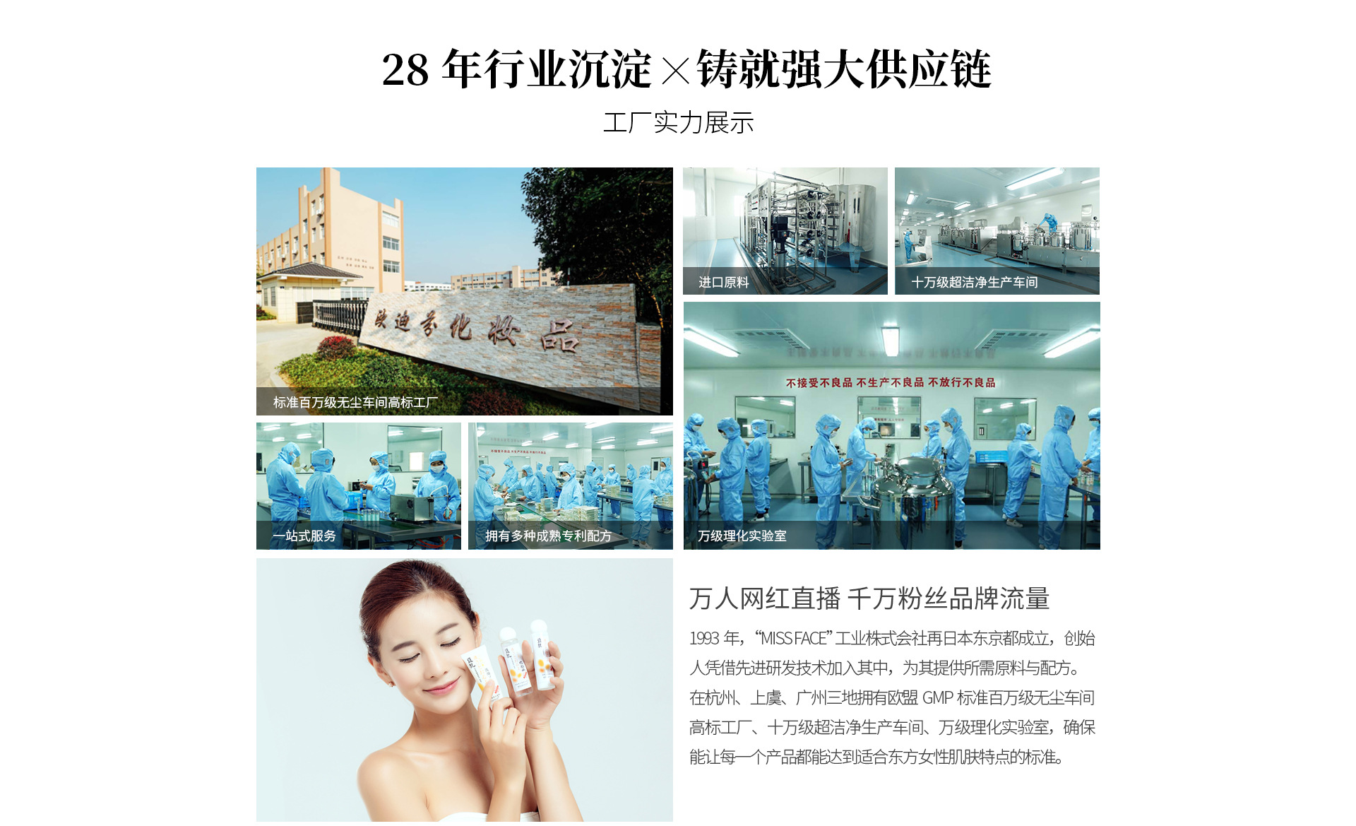 杭州歐迪芬化妝品工廠坐落于在杭州地界的余杭百丈工業區里,環境優美,山清水秀,占地15000平方米。擁有十萬級凈化無塵車間,工廠的生產制作間生產環境完全按照準藥品的生產標準GMPC的高規格來建造,確保了空氣潔凈、環境衛生、布局合理、物流暢通、生產安全 工廠具有先進的生產設備和管理流程,每一位員工遵守嚴肅思考,嚴密操作的生產標語,確保能讓每一個產品都能達到適合東方女性肌膚特點的標準。 出來的每一個產品都是經過每位員工的辛勤勞作、精準檢測而來的,認真執行“不接受不良品,不生產不良品,不放行不良品”的生產態度。 歐迪芬專注以食養膚的理念,遵循現代人崇尚自然,回歸自然的護膚品牌。 歐迪芬認為“由內而外流露出的肌膚健康之美”是我們的追求,在發展過程中始終堅持美麗與健康并存的理念,以客戶為導向,堅持以天然、安全的配方成分“打動”肌膚。貼心服務每一位顧客,在高層次上打造品牌持久影響力。