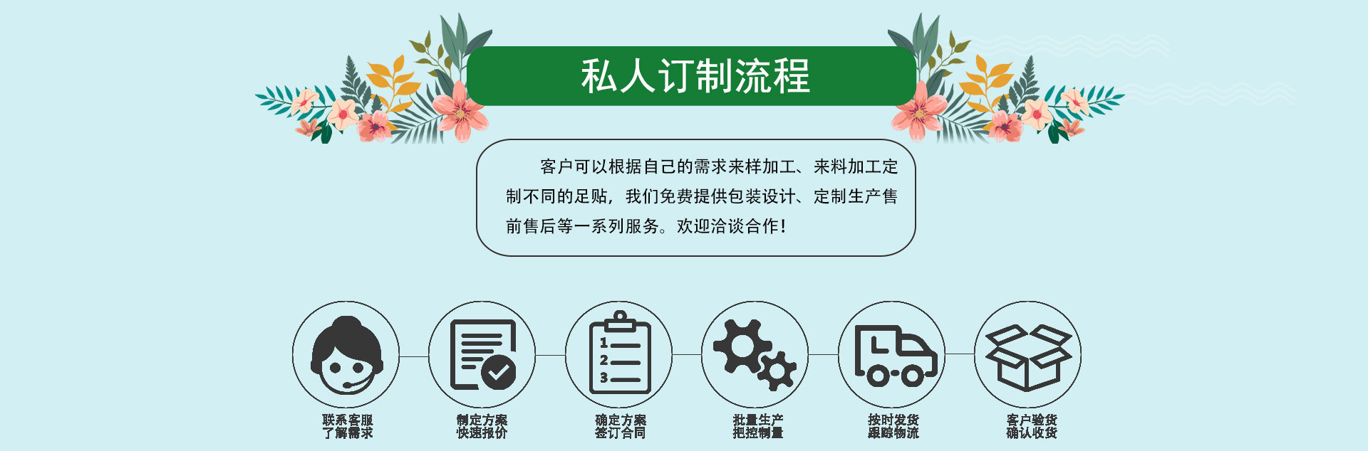 石家莊思洋生物科技有限公司 經銷批發的足貼、艾草熱灸貼、膏藥貼、膏藥空白貼、熱貼、暖貼、暖寶寶貼、眼貼、蒸汽眼罩、無紡布、復合無紡布、包裝袋、包裝盒、硅油紙、膠、艾草暢銷消費者市場,在消費者當中享有較高的地位,公司與多家零售商和代理商建立了長期穩定的合作關系。石家莊思洋生物科技有限公司經銷的足貼、艾草熱灸貼、膏藥貼、膏藥空白貼、熱貼、暖貼、暖寶寶貼、眼貼、蒸汽眼罩、無紡布、復合無紡布、包裝袋、包裝盒、硅油紙、膠、艾草品種齊全、價格合理。石家莊思洋生物科技有限公司實力雄厚,重信用、守合同、保證產品質量,以多品種經營特色和薄利多銷的原則,贏得了廣大客戶的信任。
