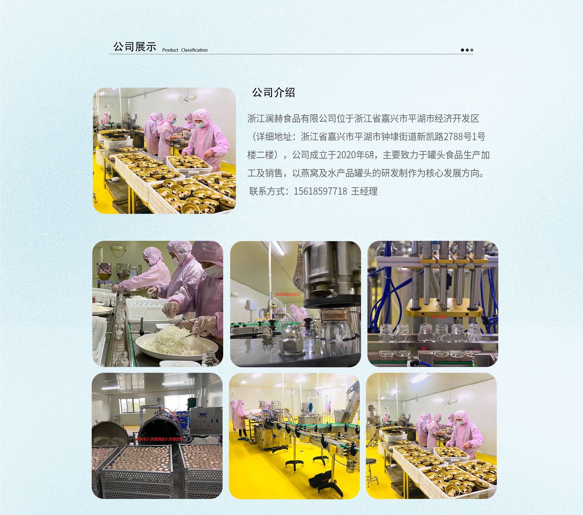 浙江瀾赫食品有限公司,是專注從事即食燕窩、即食花膠、即食海參及其衍生產(chǎn)品代加工的企業(yè),擁有完整、科學的質量管理體系,以誠信、實力和產(chǎn)品質量獲得業(yè)界的認可