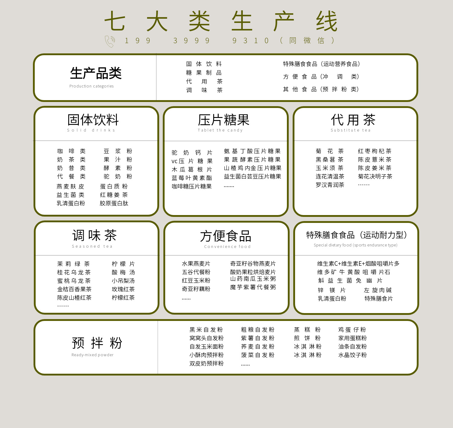 公司致力于固體飲料、壓片糖果、代用茶、調(diào)味茶、特殊膳食食品、方便食品、其他食品(預(yù)拌粉類)等領(lǐng)域的信息研究、技術(shù)開發(fā)、市場銷售、委托加工,oem貼牌定制等服務(wù)。