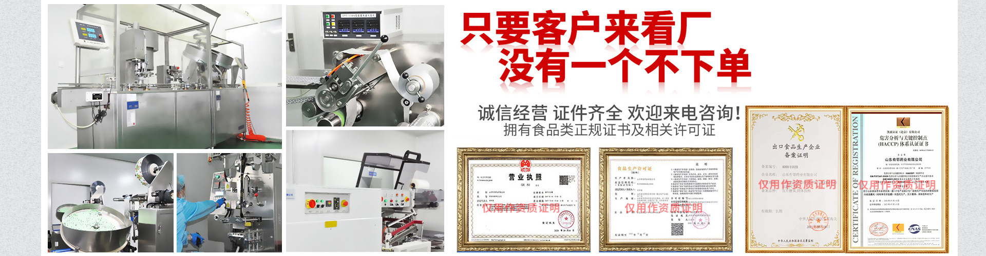 山東有鄰健康產業有限公司是集產品研發、生產、加工、銷售為一體的民營科技企業。 承誠人秉承“以科技為動力,以質量謀發展”的經營理念,在確保所有原料質優的同時,引進先進的工藝設備精心配制產品。先進的生產設備、雄厚的技術力量、完善的質量管理體系、合理的價格、優質的服務,使承誠產品備受廣大消費者信任和青睞,產品遍布全國。 本公司有著標準化的生產車間,產品覆蓋固體飲料、粉劑、壓片糖果、特膳食品、保健食品等。還可提供OEM代加工業務,為客戶量身定制您自己的專屬產品,讓您以小的風險和低的投資,擁有優質的產品。山東有鄰健康產業有限公司真誠歡迎廣大新老客戶蒞臨指導,洽談業務! 我們一直在努力,有大家的關注和支持,相信我們會做得更好!