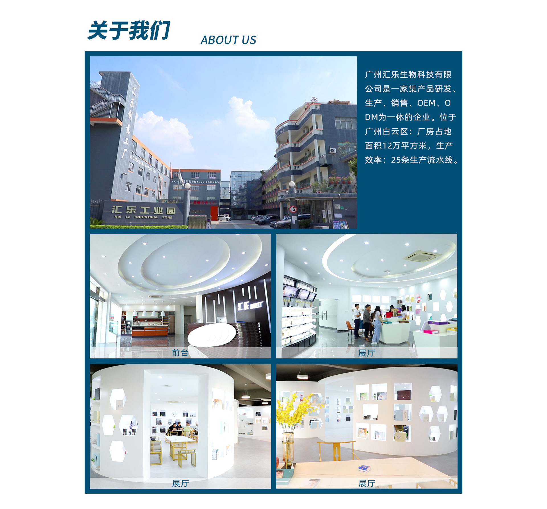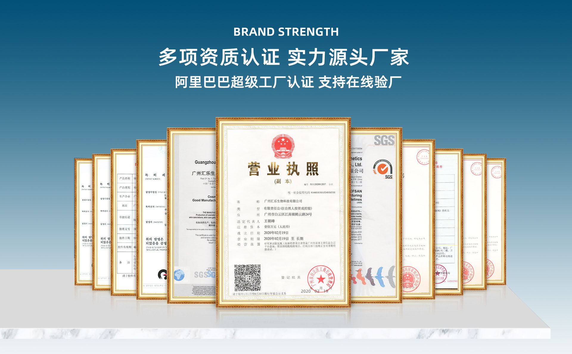 廣州匯樂生物科技有限公司是一家一站式化妝品加工企業。公司為您提供從商標注冊、品牌策劃、品牌設計、通路建議、產品研發、生產、包裝、運輸為一體的化妝品加工服務。經過多年的深耕發展現已成為國內外知名的化妝品加工廠,在行業內頗具口碑、影響力。我們擁有1萬級和10萬級無塵凈化車間(是國家對化妝品生產環境要求的30倍),是廣東省化妝品行業的模范工廠,嚴格貫徹GMP生產標準,采用先進的生產技術和設備,擁有自己的原材料公司,所有原料均來自于瑞士、德國、日韓、保加利亞等多個國家,在產品價格、特色方面給客戶提供了很大的優勢,為您提供高的品質保障。擁有自己穩定而精湛的技術研發團隊,管理規范,層層把關,流暢而又嚴謹!