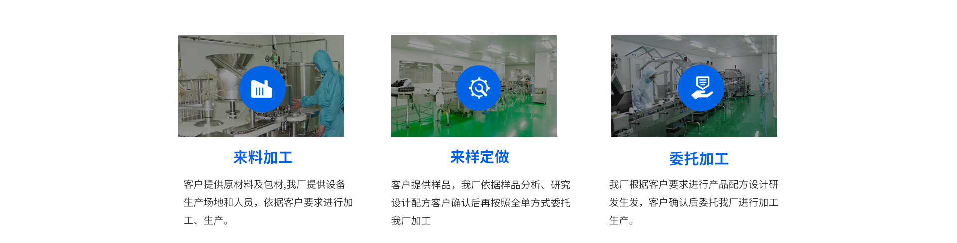 代工品類:丸劑 片劑 粉劑 口服液飲品 軟糖 硬膠囊 軟膠囊 膏滋 調(diào)制乳粉 特殊膳食 普通食品 膏貼 乳膏 噴劑 凝膠 水劑 霜膏