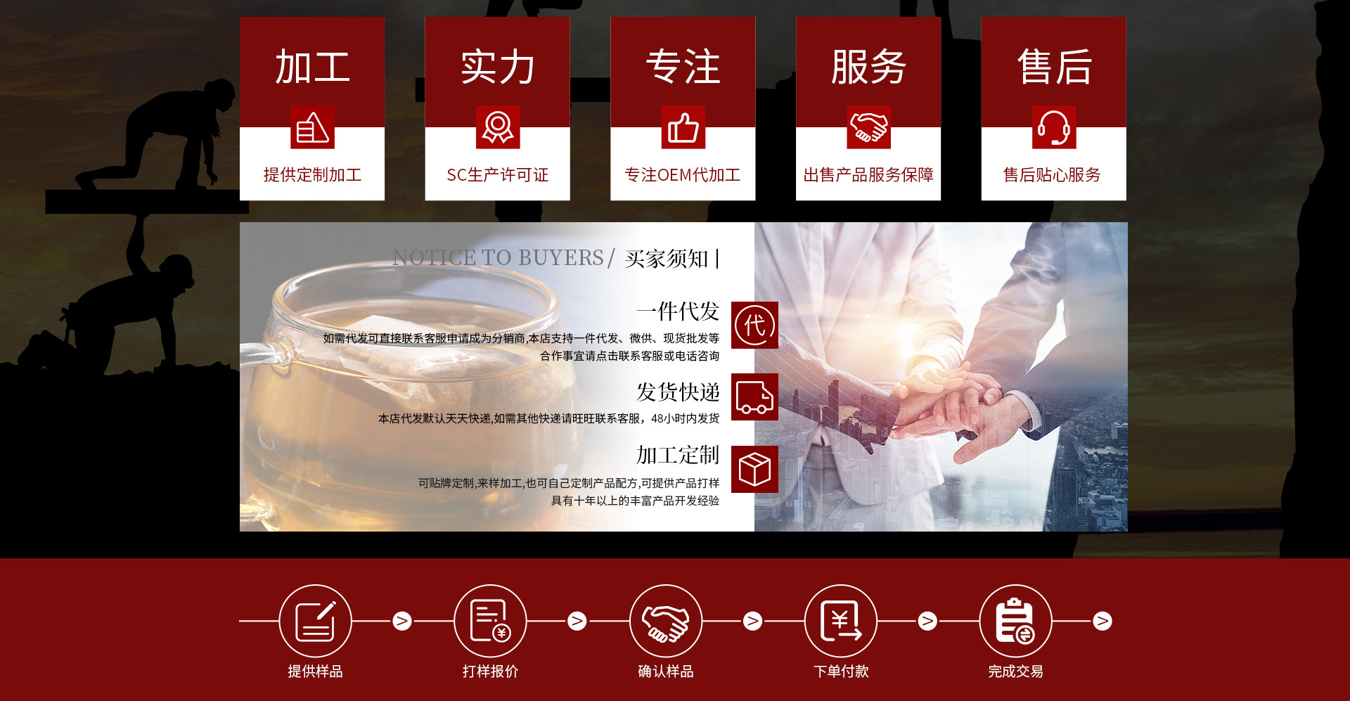 版權所有 代工幫 【m.cndrinks.cc】 CopyRight 2020-2025 豫網藥信備字[2025]00123號 電信與信息服務業務經營許可證:豫ICP備20017666號-3 鄭州代工幫網絡科技有限公司 公司地址:鄭州市金水區北環路與文化路瀚海北金B座7019室 聯系電話:0371-55621375 本站只起到信息平臺作用,不為交易經過負任何責任,請雙方謹慎交易,以確保您的權益 任何單位及個人不得發布欺騙性產品信息