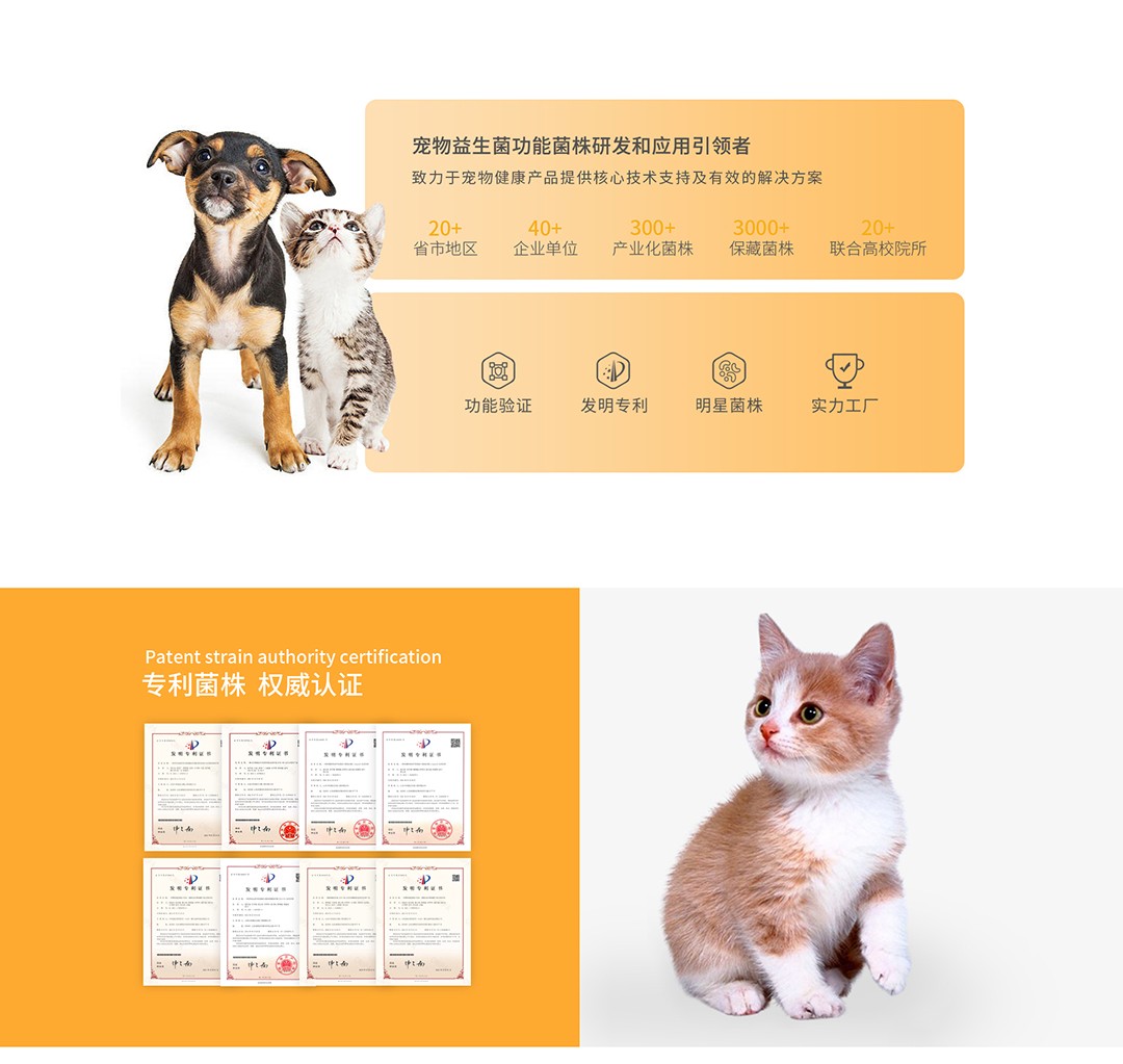 未認證 寵物保健熱度榜 第13名 代工品類:寵物益生菌原料 寵物益生菌產品 寵物營養補充劑