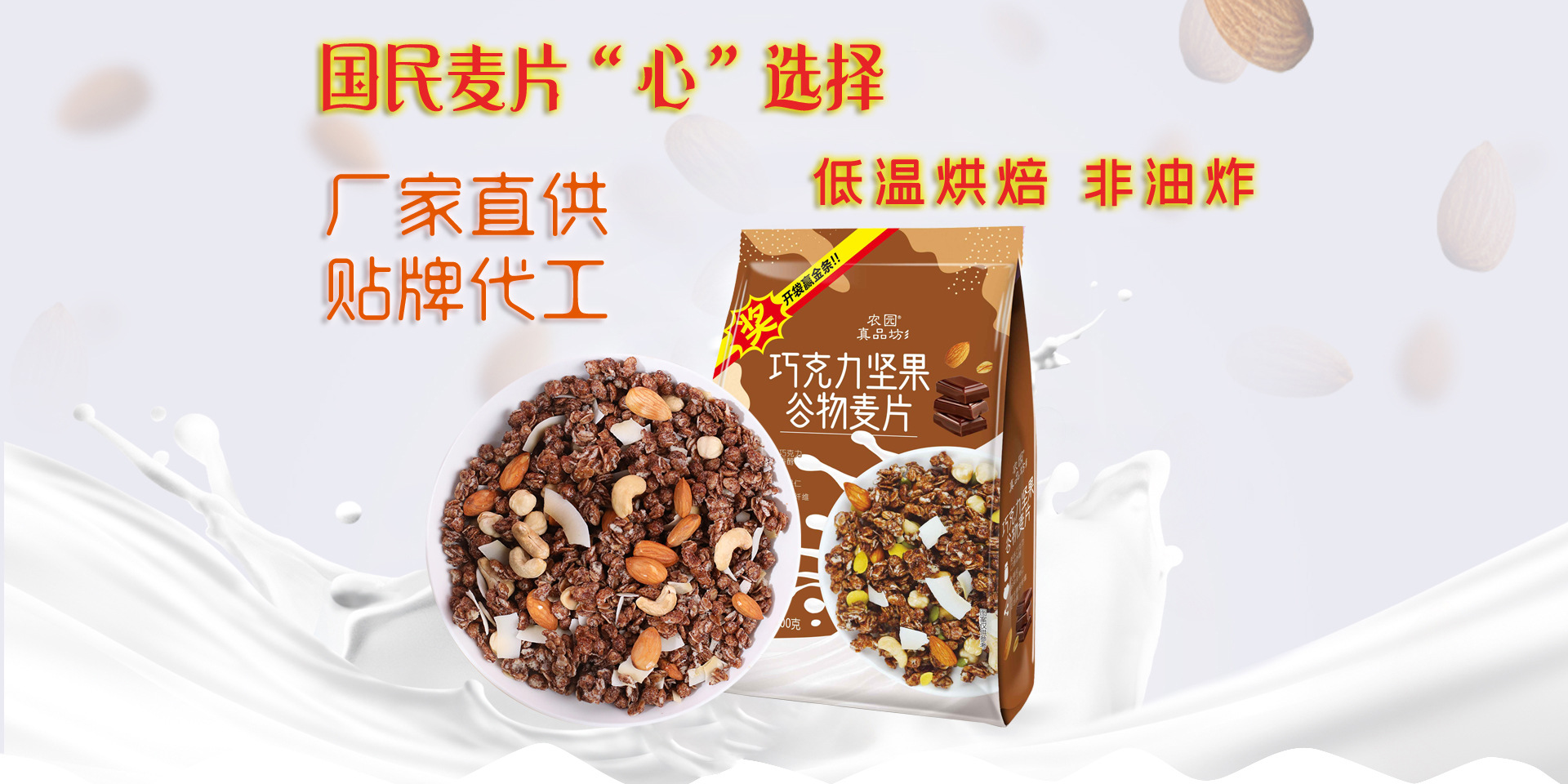 主營生產:谷物燕麥脆片、烘培燕麥片、玉米片、谷物圈、酸奶果粒谷物麥片、堅果果粒谷物麥片、酸奶烘焙燕麥片