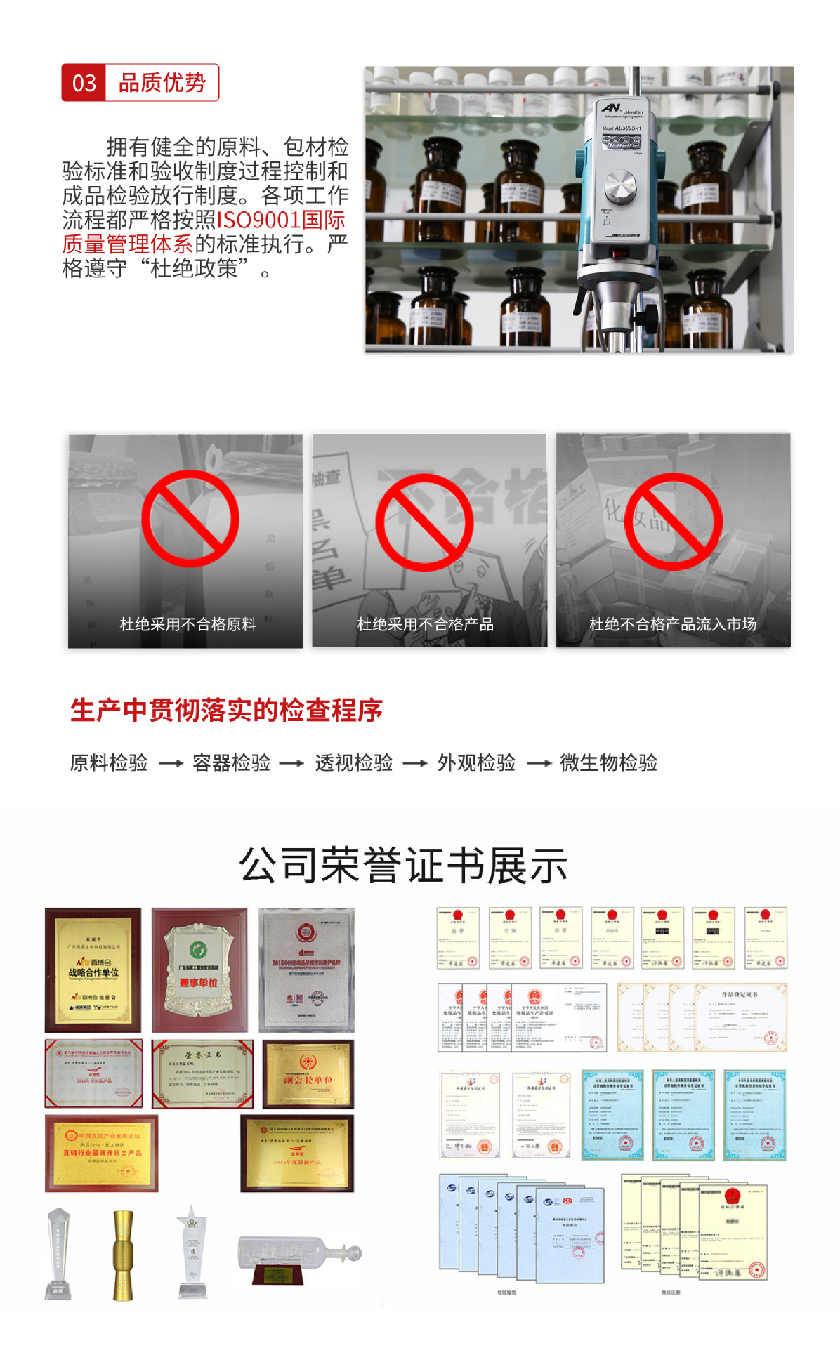 佛山市肯耐施生物科技有限公司是國內知名的化妝品制造出品商,專注于化妝品、護膚品以及洗護用品加工等研究和開發,形成了針對企業、工廠、媒體、電商、洗護行業、化妝洗護等不同行業、不同規模、不同應用的五大系列產品和針對性解決方案,是國內知名的制作商。廣東省產品質量檢驗網成員單位;公司占地面積約1萬平方米,集生產、OEM、加工為一體,擁有500KG、1000KG、2000KG、5000KG高溫真空乳化鍋及自動化灌裝設備和生產線。