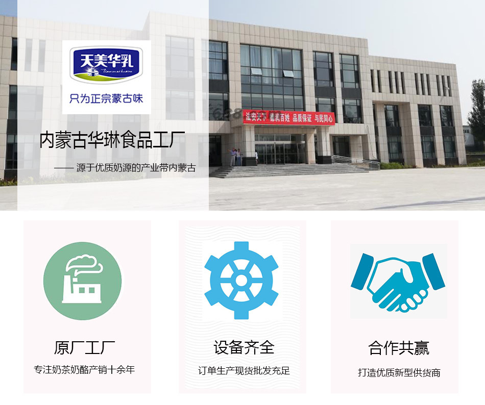 公司組織機構健全,設有企業管理部、生產系統、營銷系統、財務系統、采供系統,經過短短幾年的發展,公司在科研、生產、銷售形成科學合理的產業鏈條,規模效益日益顯現。內蒙古華琳食品有限責任公司擁有的品牌“天美華乳”是自治區著名商標,公司依托內蒙古大草原純天然奶源優勢,傳承草原牧人幾百年釀造工藝,引進國內外先進設備、生產技術和管理模式,將傳統配方與現代技藝相結合,生產的產品主要有額頡奶茶、含乳制固態成型制品。