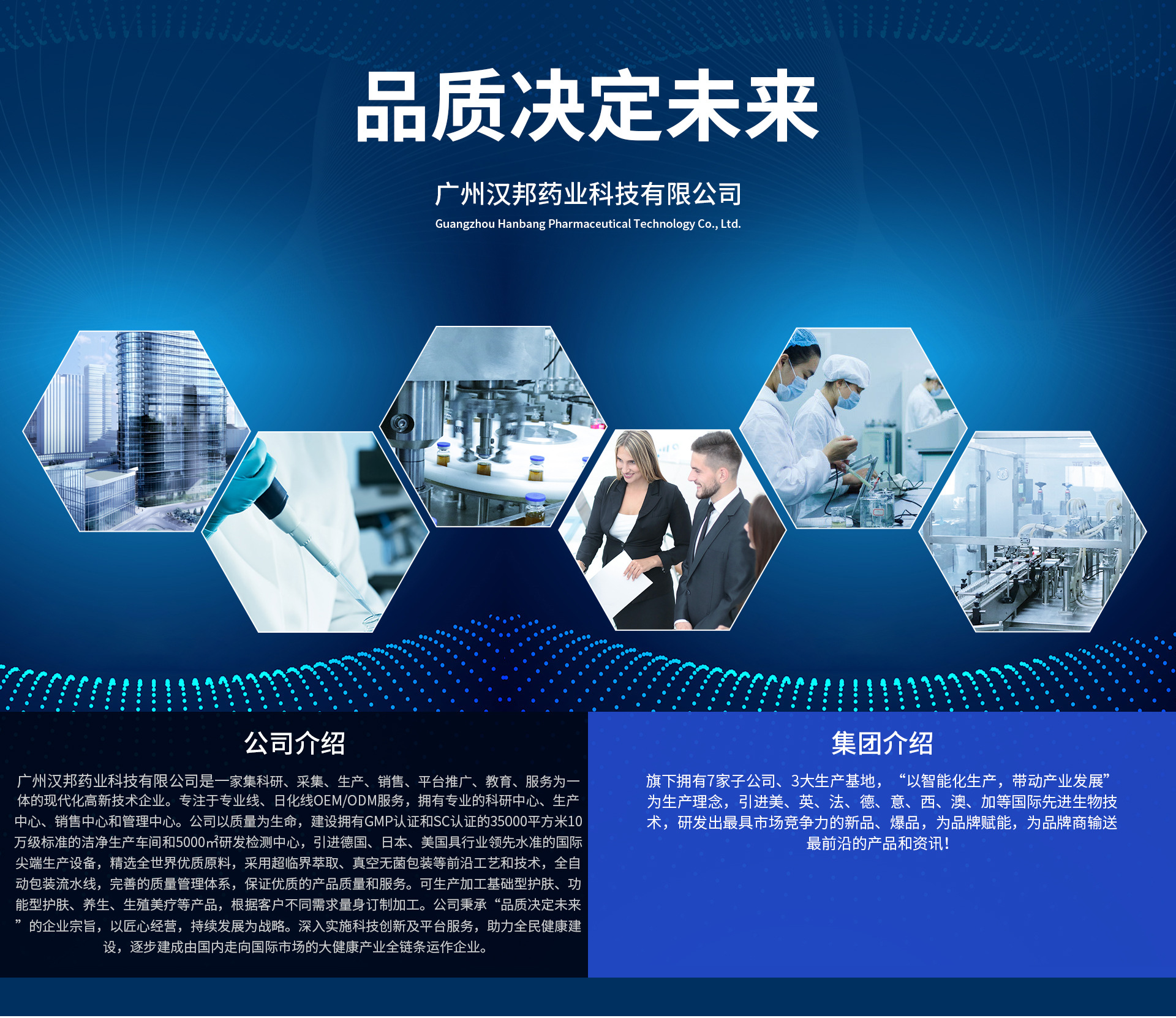 廣州漢邦藥業(yè)科技集團(tuán)是一家專業(yè)致力于私護(hù)、美妝大健康產(chǎn)品一體化的現(xiàn)代型高新企業(yè),是一家集研發(fā)、設(shè)計、生產(chǎn)、品牌策劃、銷售、教育味一體的專業(yè)OEM/ODM加工工廠
