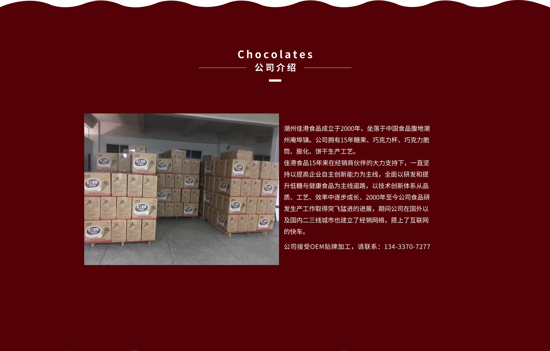 潮州市潮安區(qū)庵埠鎮(zhèn)佳港食品廠是巧克力杯、脆筒巧克力、麥麗素、壓片糖等產(chǎn)品專業(yè)生產(chǎn)加工的公司,擁有完整、科學(xué)的質(zhì)量管理體系。潮州市潮安區(qū)庵埠鎮(zhèn)佳港食品廠的誠信、實(shí)力和產(chǎn)品質(zhì)量獲得業(yè)界的認(rèn)可。歡迎各界朋友蒞臨參觀、指導(dǎo)和業(yè)務(wù)洽談。