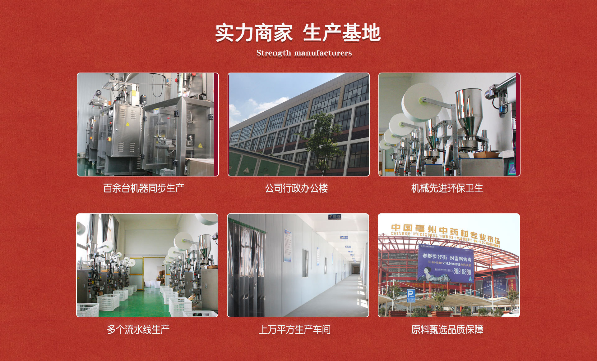 安徽本草濟康健康科技有限公司座落于有“中華藥都”之稱的安徽亳州。 亳州是中國歷史文化名城、全國首批優秀旅游城市、中國“長壽之鄉”。亳州是中華民族古老文化和傳統中醫藥的發祥地之一,常年種植中藥材170多個科,400多個品種,100多萬畝,種植面積占全國的1/10。現已初步形成全國最大的中藥材飲片加工產業集群。 安徽本草濟康健康科技有限公司是一家專門從事開發、生產與經營各類花果茶、花草茶、復方代用茶、組合茶、調味茶等現代化高科技公司。秉承“健康、養生”的企業精神,引進國內先進的袋泡茶生產線,標準化生產包裝車間,確保了產品質量的穩定性。多年的市場磨礪和沉淀,與國內多企業建立了良好的合作關系。 公司可代理各種花草的加工,OEM貼牌,我們本著“誠信為本、客戶至上”的理念,竭誠為你服務。