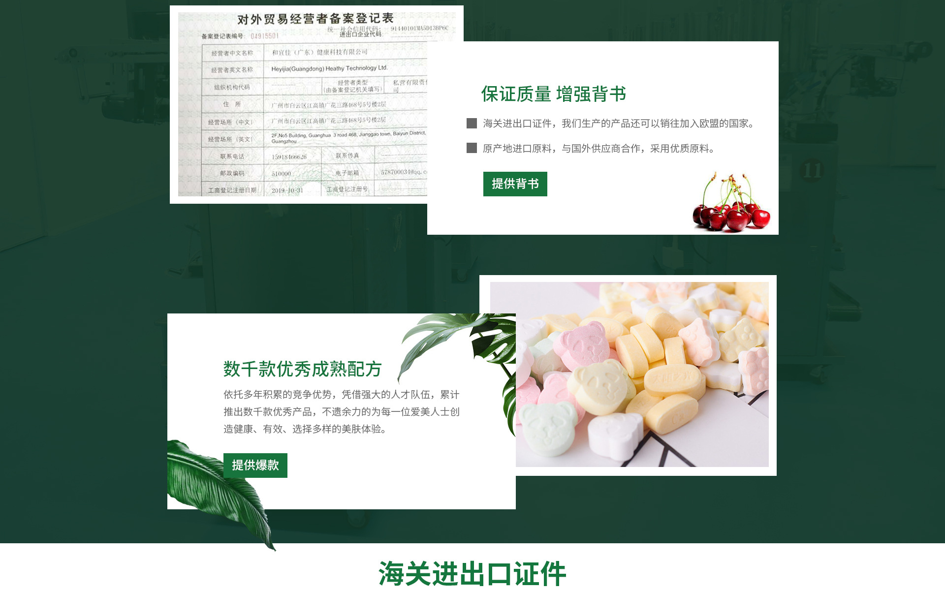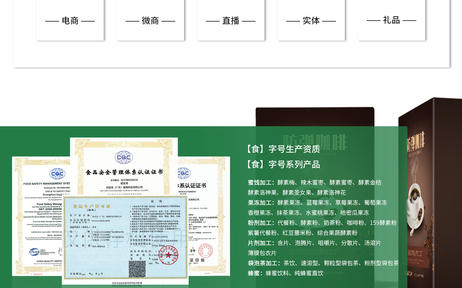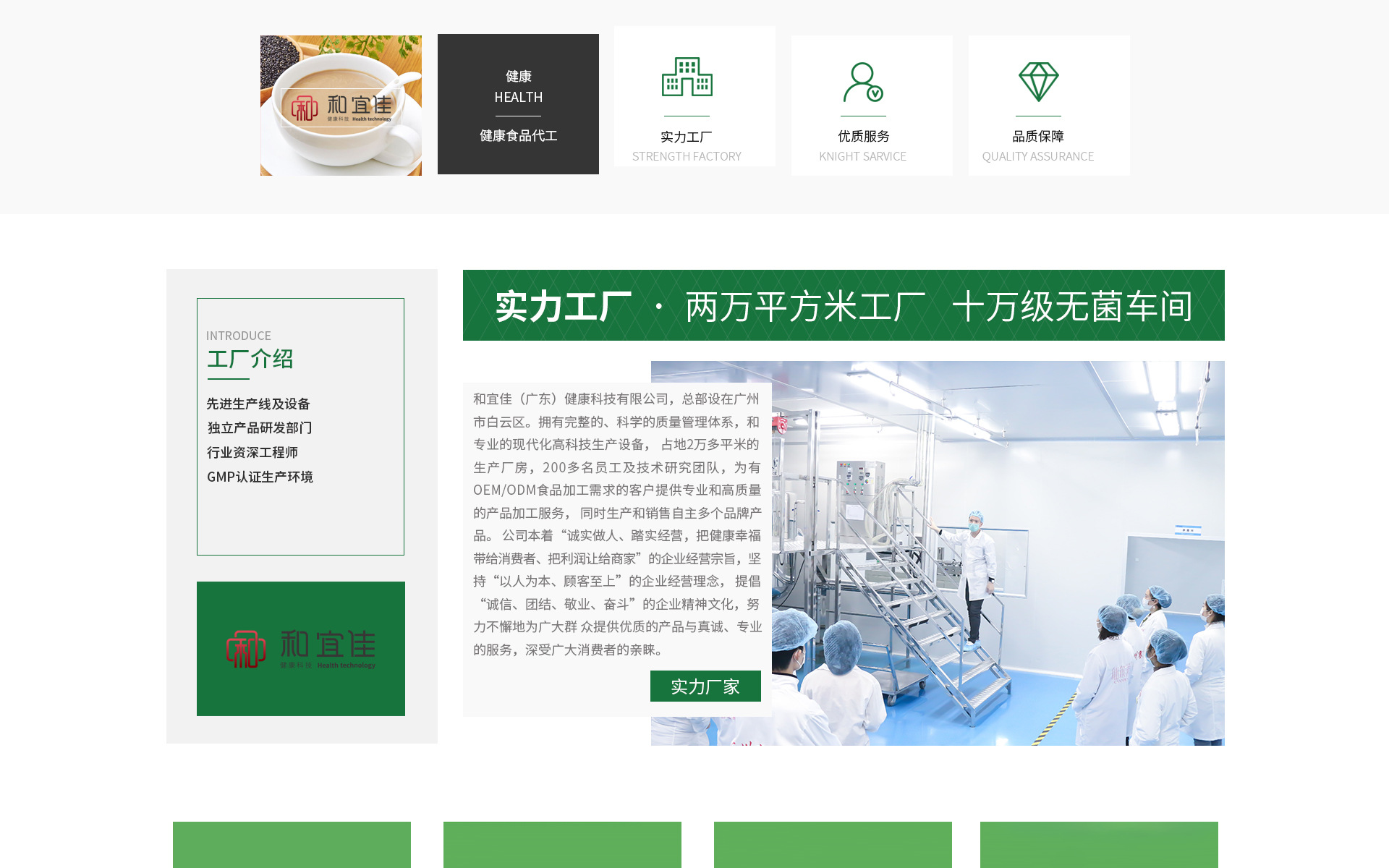 和宜佳(廣東)健康科技有限公司,總部設(shè)在廣州市白云區(qū)。擁有完整的、科學(xué)的質(zhì)量管理體系;專業(yè)的現(xiàn)代化高科技生產(chǎn)設(shè)備, 2萬(wàn)多平米的生產(chǎn)廠房,200多名員工和技術(shù)研究團(tuán)隊(duì);和宜佳為有 OEM/ODM食品加工需求的客戶提供專業(yè)和高質(zhì)量的產(chǎn)品加工服務(wù), 同時(shí)生產(chǎn)和銷售多個(gè)自主品牌產(chǎn)品。 公司本著“誠(chéng)實(shí)做人、踏實(shí)經(jīng)營(yíng),把健康幸福帶給消費(fèi)者、把利潤(rùn)讓給商家”的企業(yè)經(jīng)營(yíng)宗旨,堅(jiān)持“以人為本、顧客至上”的企業(yè)經(jīng)營(yíng)理念, 提倡“誠(chéng)信、團(tuán)結(jié)、敬業(yè)、奮斗”的企業(yè)精神文化,努力不懈地為廣大群 眾提供優(yōu)質(zhì)的產(chǎn)品與真誠(chéng)、專業(yè)的服務(wù),從而深受廣大消費(fèi)者的親睞。