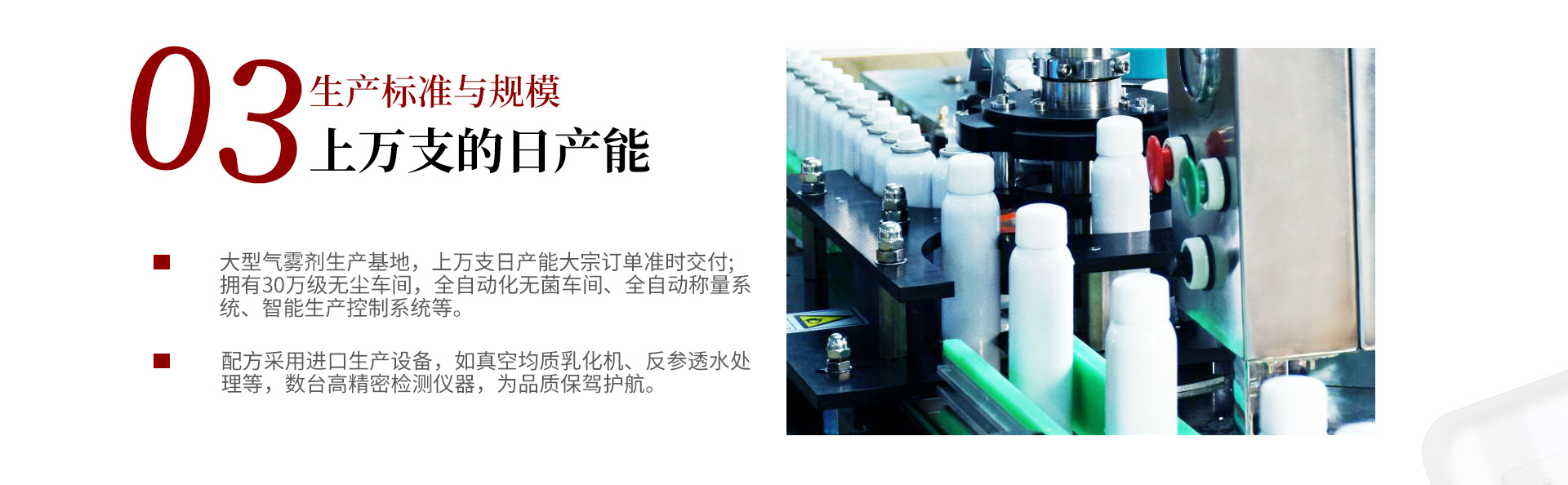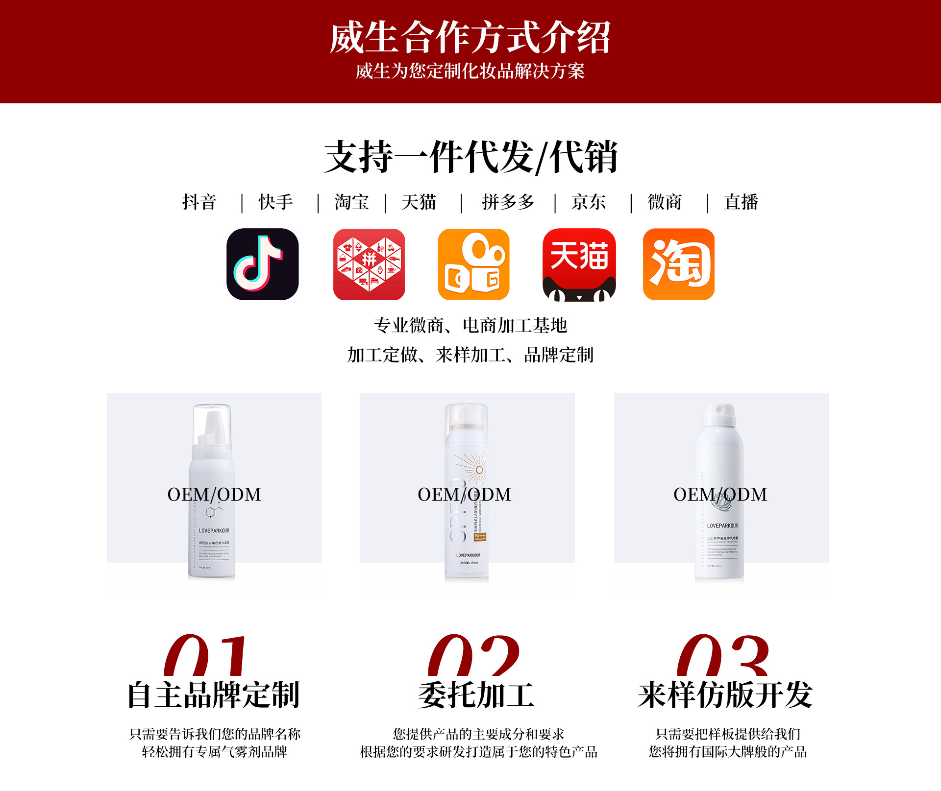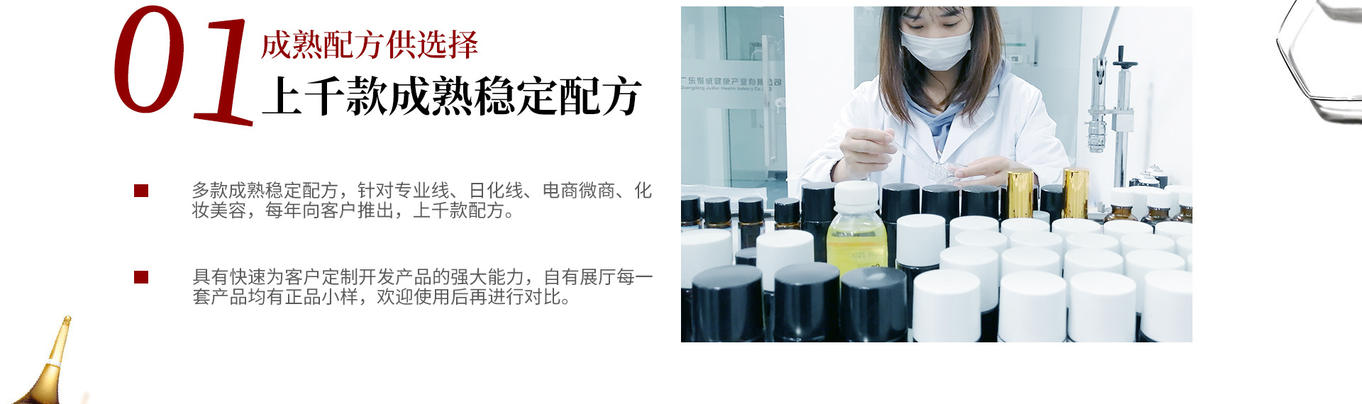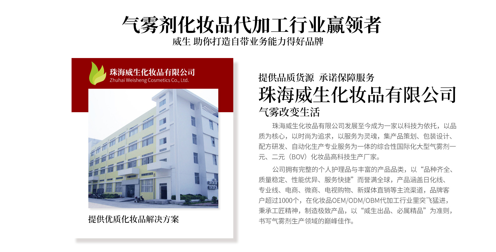 廣東聚威健康產(chǎn)業(yè)有限公司創(chuàng)始于2003年,發(fā)展至今已成為一家以科技為依托,以品質(zhì)為核心,以時(shí)尚為追求,以服務(wù)為靈魂,集產(chǎn)品策劃、包裝設(shè)計(jì)、配方研發(fā)、自動(dòng)化生產(chǎn)、專業(yè)服務(wù)為一體的綜合性國際化大型氣霧劑一元、二元(BOV)化妝品高科技生產(chǎn)廠家。公司擁有完整的個(gè)人護(hù)理品與豐富的產(chǎn)品品類,以“品種齊全、質(zhì)量穩(wěn)定、性能優(yōu)異、服務(wù)快捷”而譽(yù)滿全球,產(chǎn)品涵蓋日化線、專業(yè)線、電商、微商、電視購物、新媒體直銷等主流渠道,品牌客戶超過1000個(gè),在化妝品OEM/ODM/OBM代加工行業(yè)里突飛猛進(jìn),秉承工匠精神,制造極致產(chǎn)品,以“聚威出品、必屬精品”為準(zhǔn)則,書寫氣霧劑生產(chǎn)領(lǐng)域的巔峰佳作。